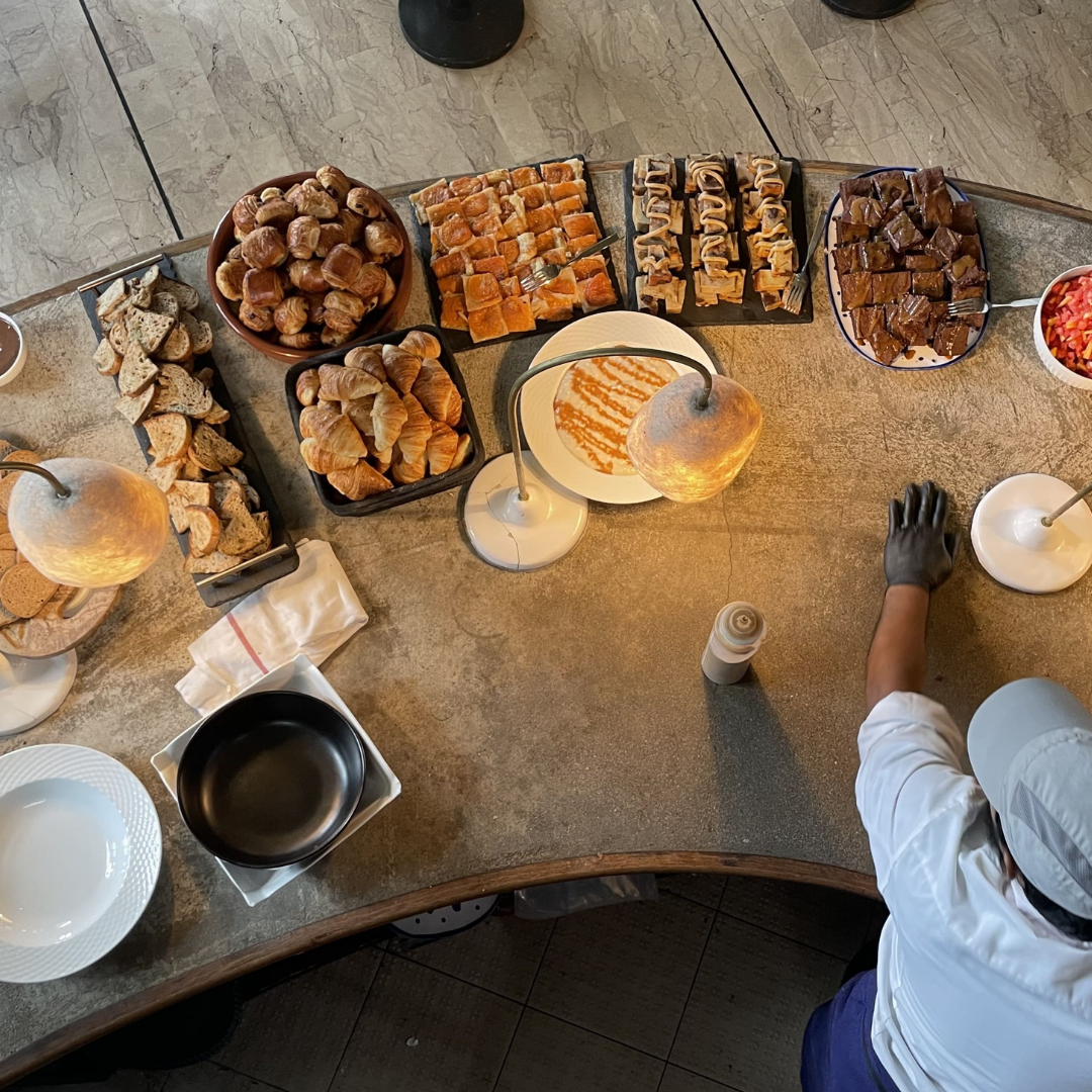 Installé sur le bar en buffet libre-service, le brunch permet de se servir à son rythme et de découvrir différentes propositions salées et sucrées.