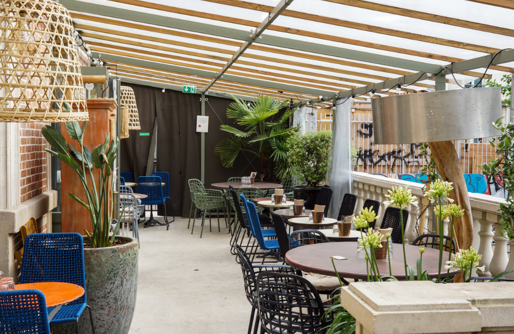 Plongeant sur la petite ceinture, agréablement exposée au soleil et au calme de l’agitation parisienne, le balcon de Poinçon prend vie dès l’arrivée des beaux jours. Il est l’endroit rêvé pour profiter d’un déjeuner au grand air, ou d’un cocktail le soir venu.